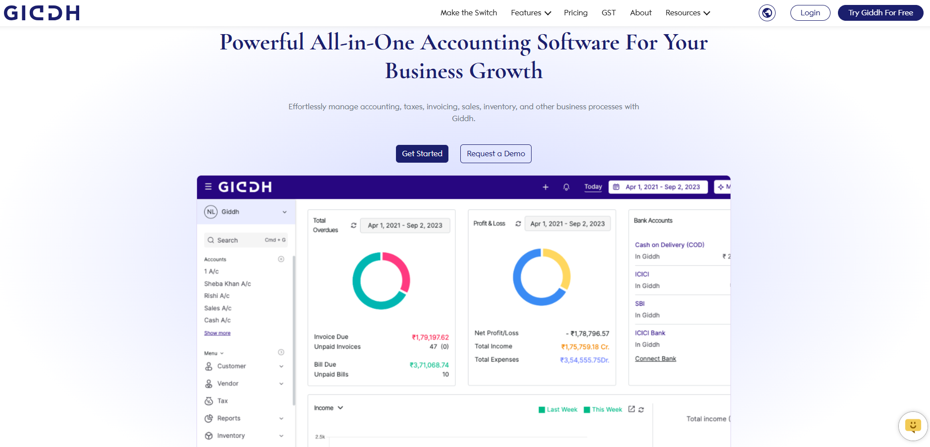 Cloud-Based Flexibility: As a cloud-based accounting software, Giddh offers complete mobility and accessibility from any device.