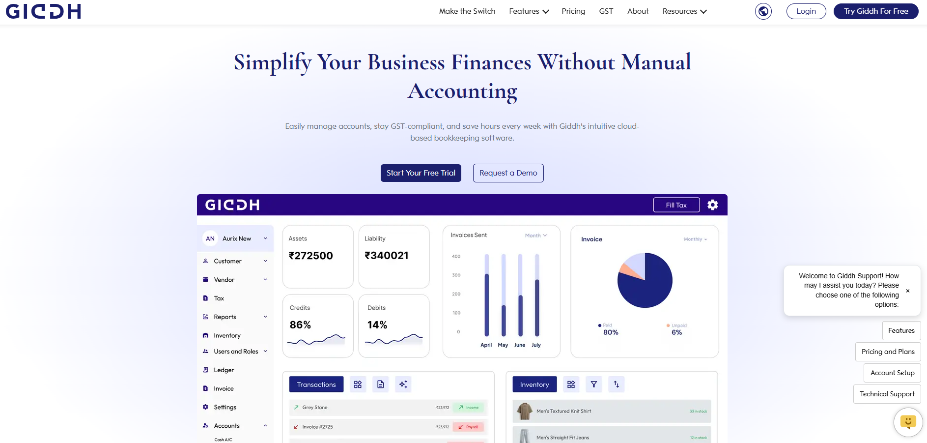 Managing inventory alongside accounting is often a headache for small businesses. Giddh offers integrated inventory management that makes tracking stock and finances seamless.