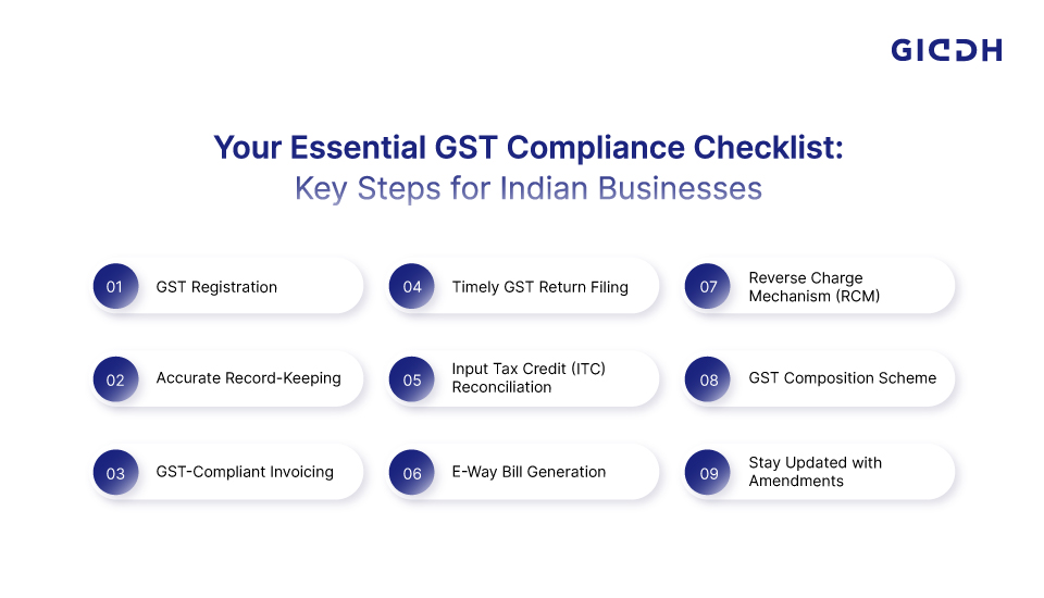 Image Text: Your Essential GST Compliance Checklist: Key Steps for Indian Businesses