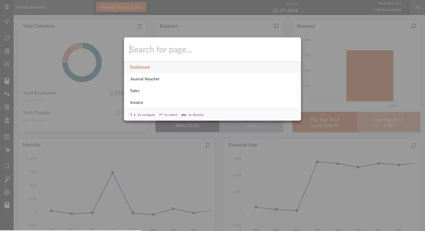 Now, using the Giddh Search, with just the magic of typing Giddh’s very own magic spell- ctrl+k(Windows)/cmd+k(macOS), you can summon the search box where you can type the initials of the page where you want to land on and hit enter!